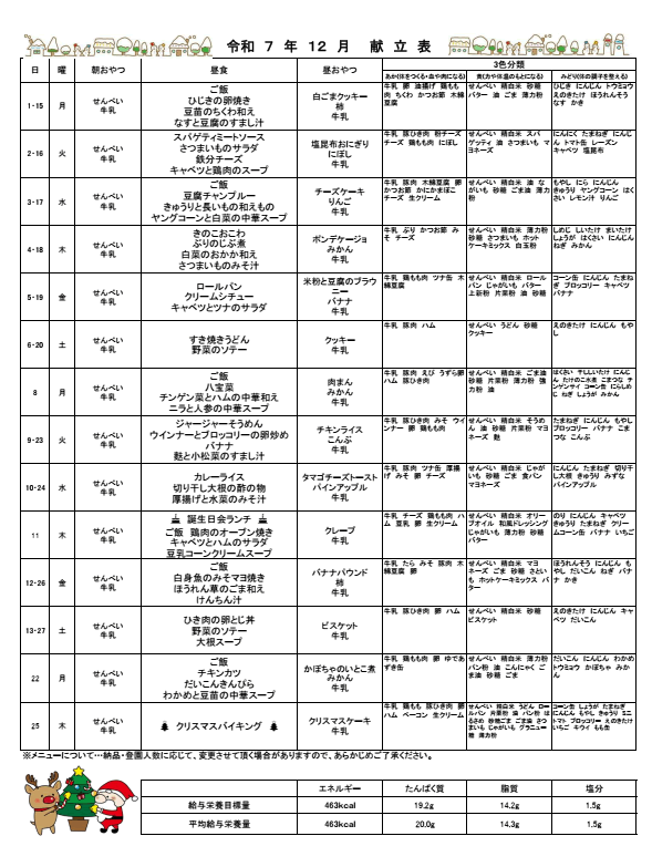 献立表
